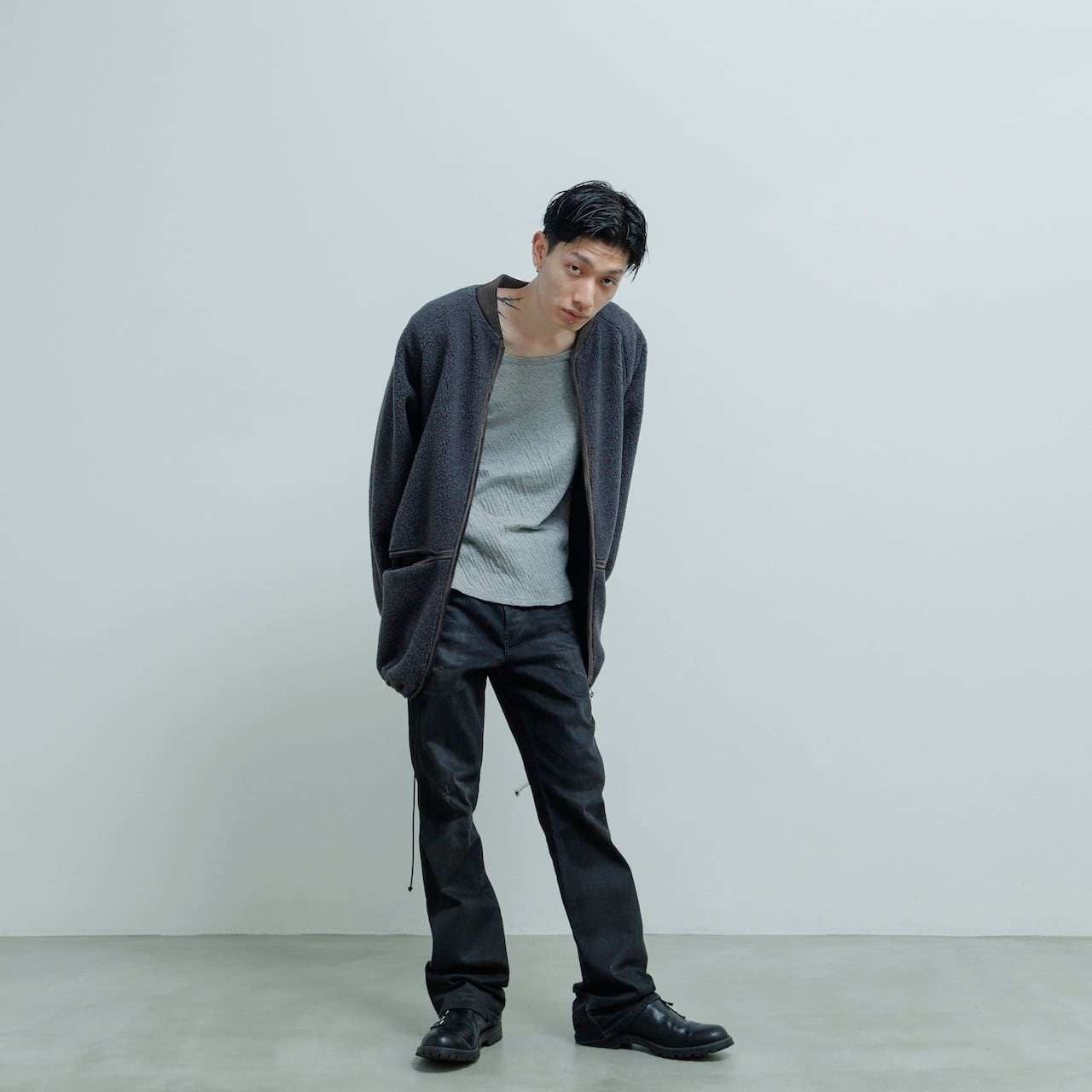 ヴィンテージのフリースをベースに、シルエットと空気感をAKIO流に再構築。