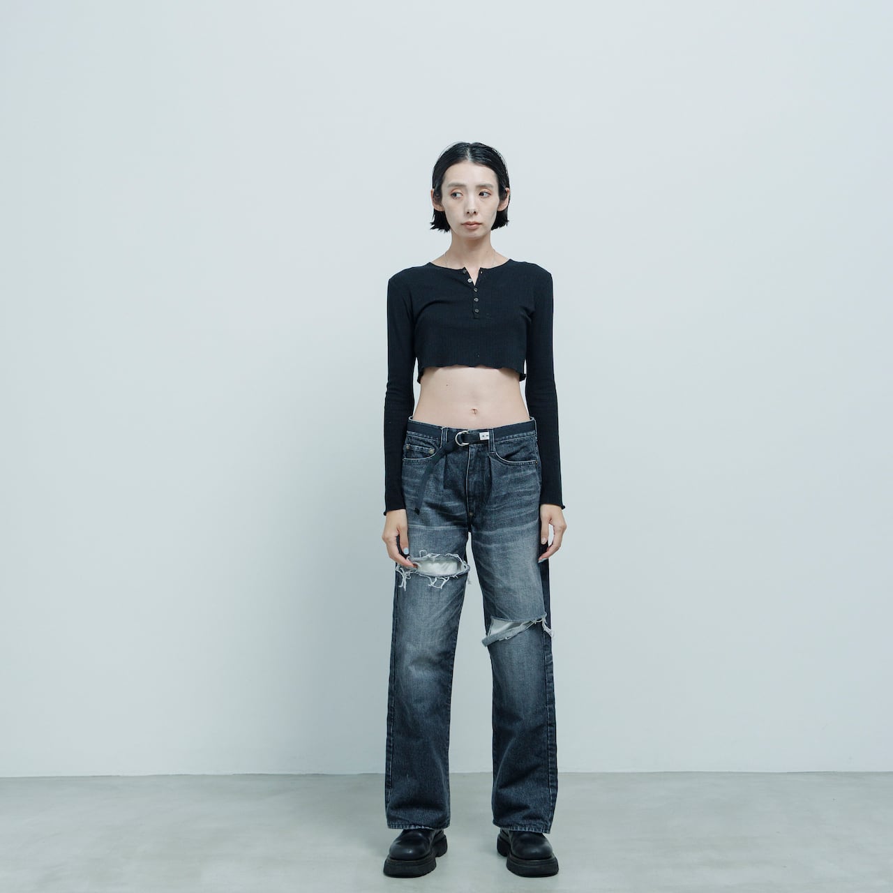 ちょっと開いた首元はゆるい空気を。ヘンリーネックのリラックスした首元が、気取りすぎない抜けを作ってくれます。ストレッチ性のあるポリウレタンを含むため、体に優しくフィットし、動きやすさも兼ね備えているのも嬉しいポイント。