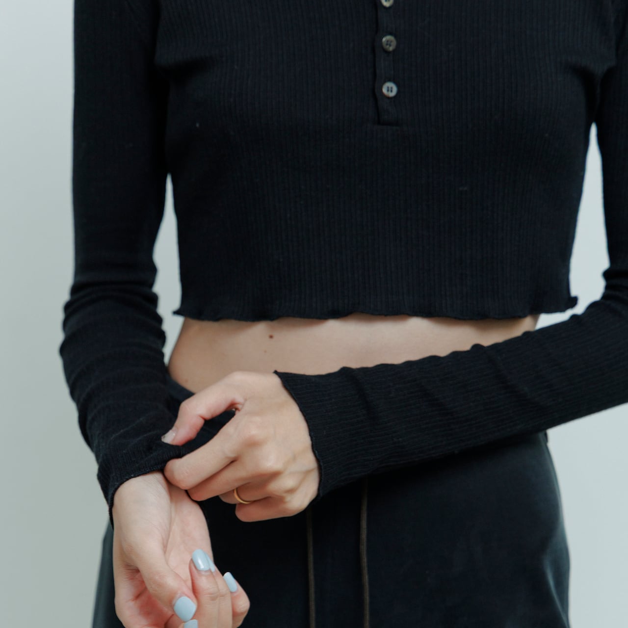 シルクをブレンドした贅沢な風合いのショート丈ヘンリーネック。