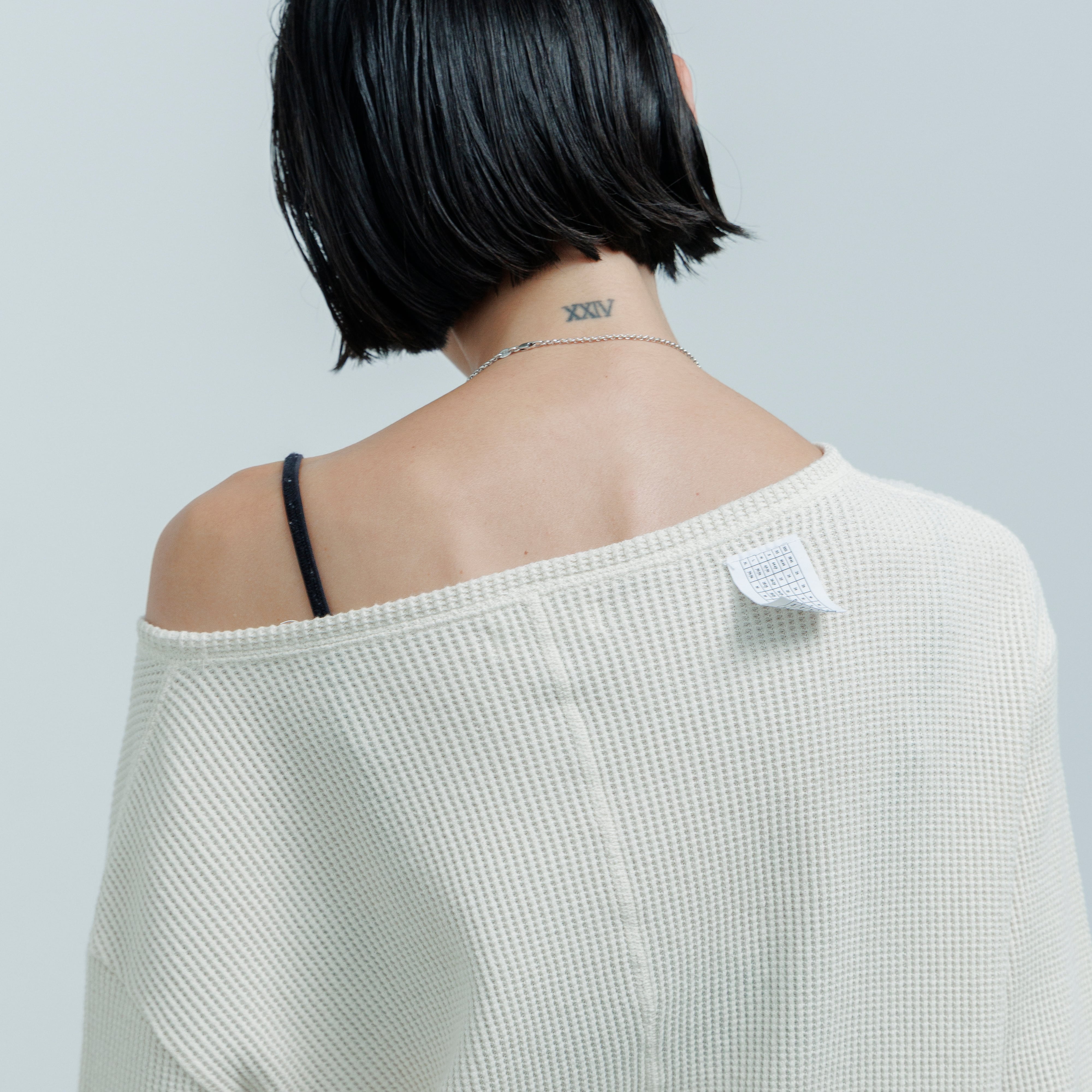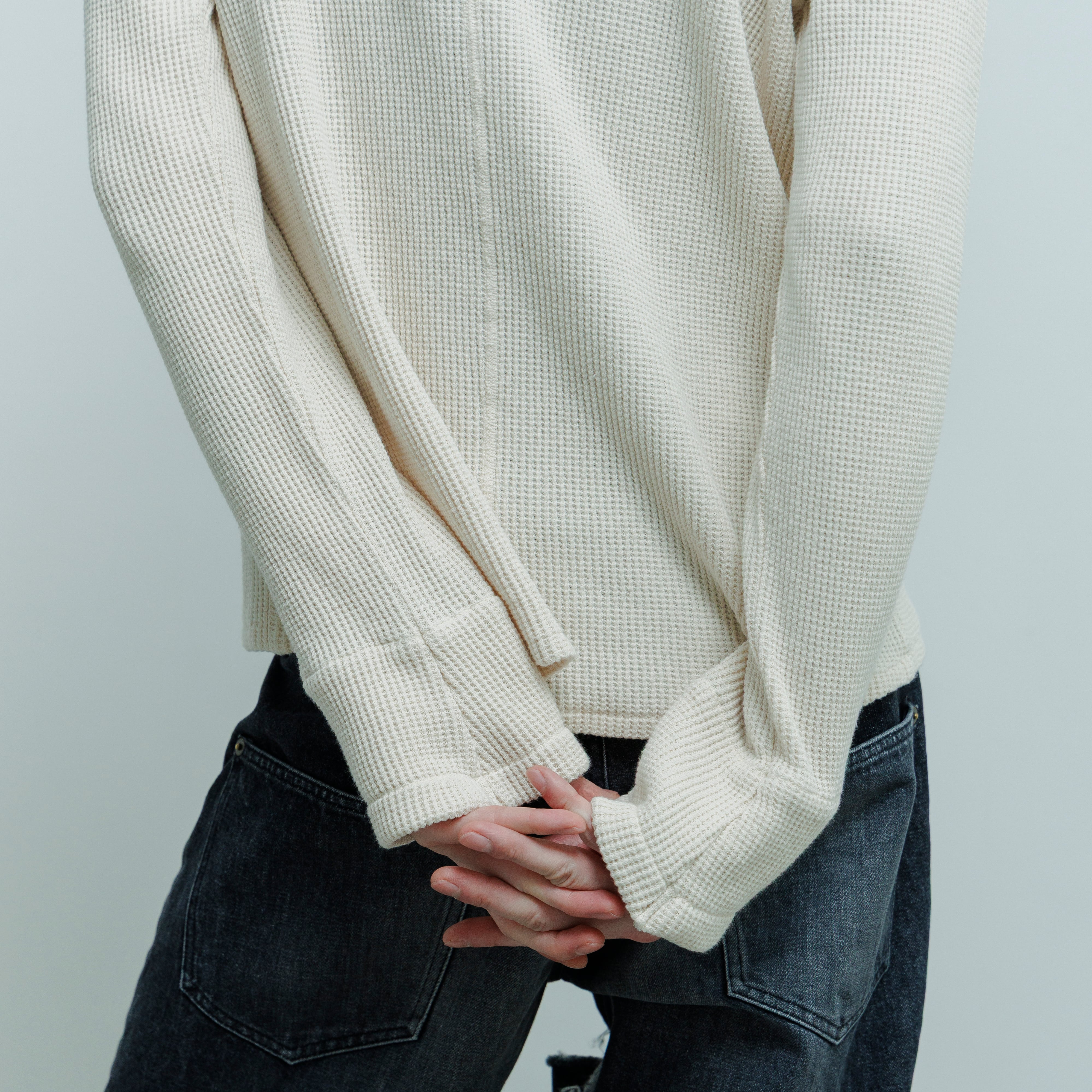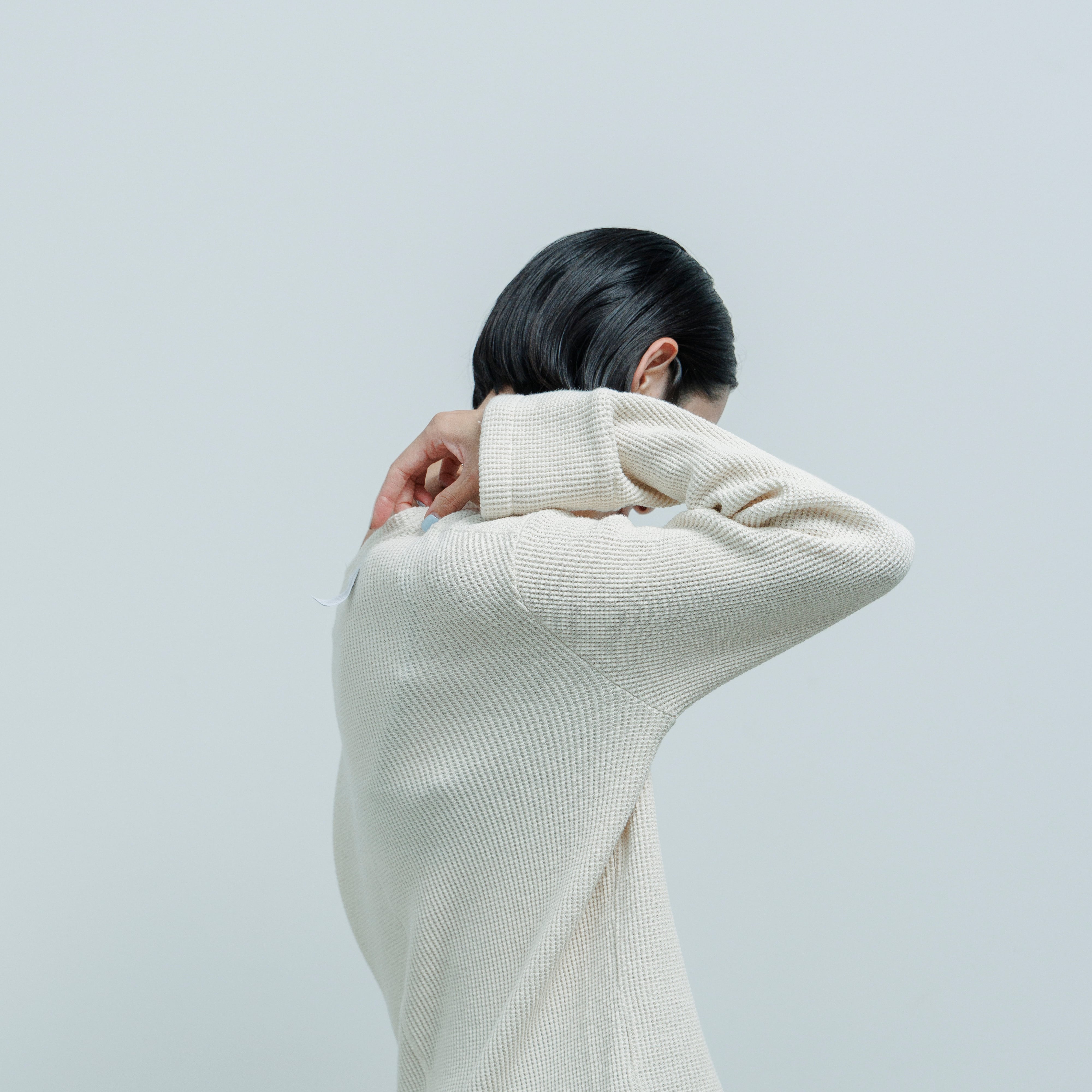 長年着込んだような、空気を含んだ編み地を使用。ヴィンテージの空気を現代のフォルムに落とし込んだサーマルロングスリーブです。