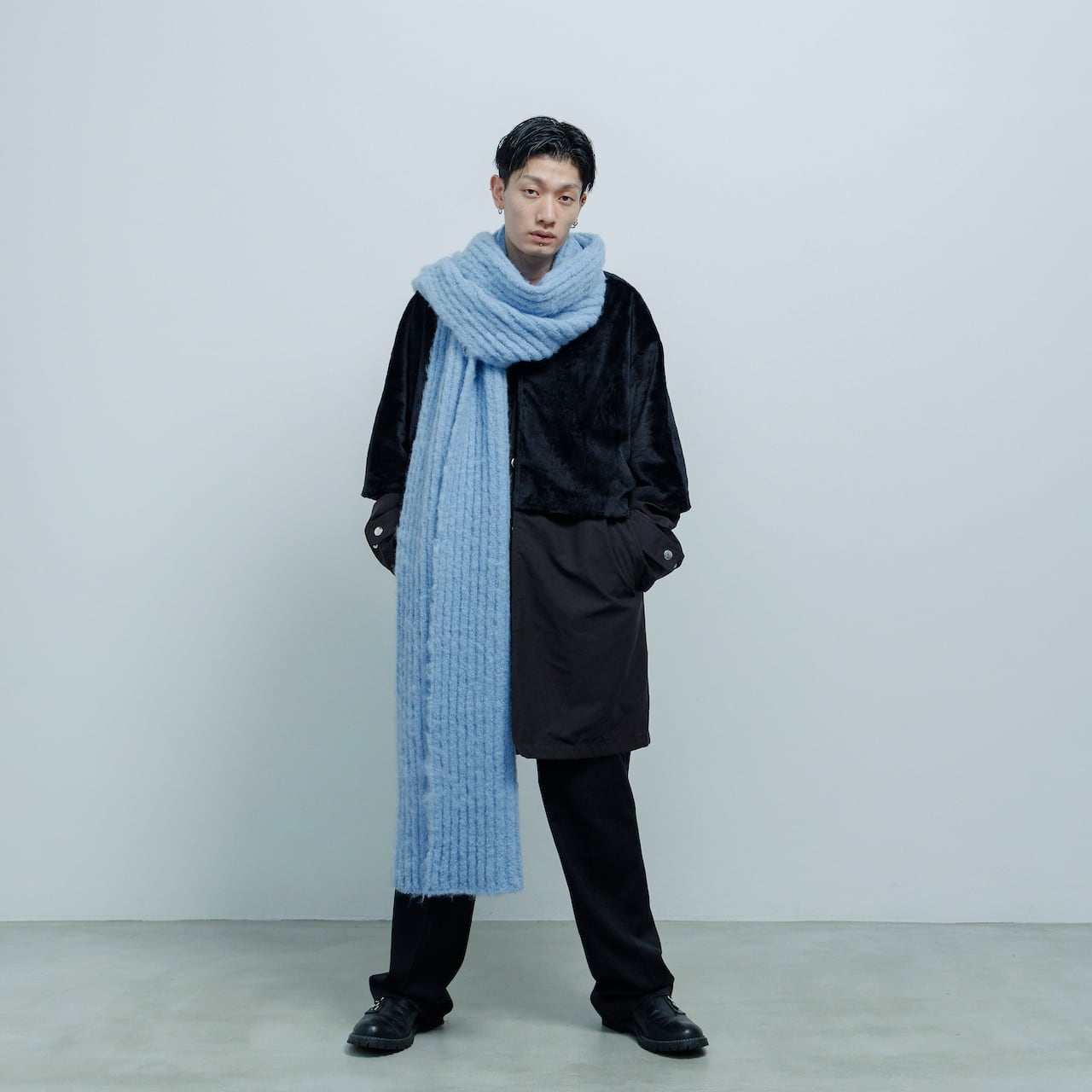 首元をやさしく包み込むロング&ボリューム仕様。軽やかで柔らかな肌ざわりのモヘア素材を贅沢に使用しました。