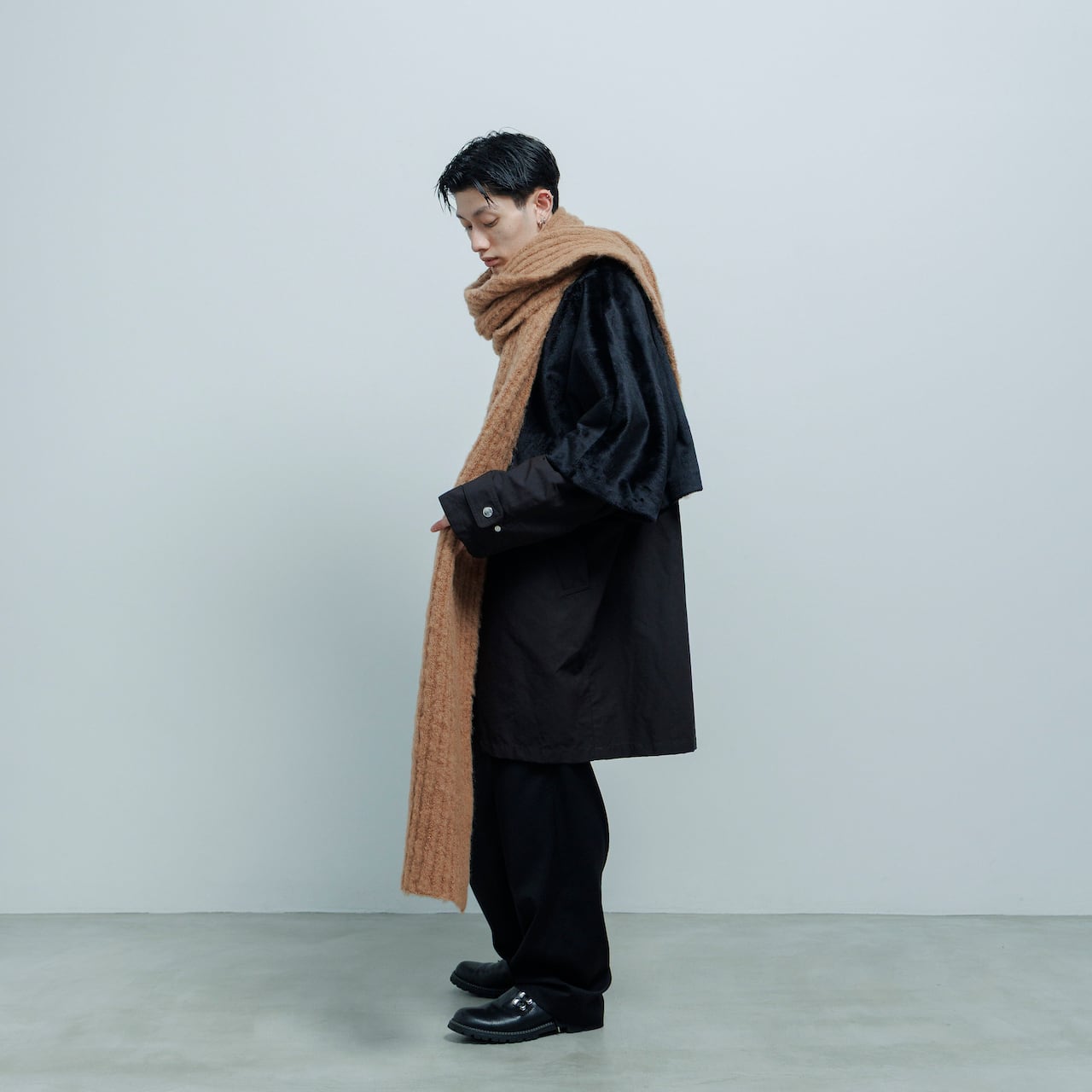 装いを引き締めるソリッドなブラックにシンプルなインナーを合わせるだけで、シーズンムードを一気に格上げしてくれそう。